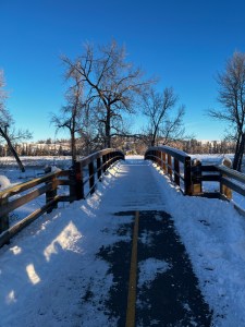 Running is unique – I run to the conditions. If the paths are too snowy, or if it’s too cold, (-15C or more – running gear gets too bulky), I do a 3k walk (in any condition) and run later. I am very lucky because I can afford winter walking/hiking gear – fleece hoodie, puffer jacket, windproof shell, two layers of pants, light gloves inside mitts, toque and a buff for my neck and face. Walking gear for really freaking cold weather (I am good until -25). If it’s -5C to zero get out the shorts and flip flops (kidding). I follow my walk with a 6k run on the treadmill (another luxury, a gift from my daughter).